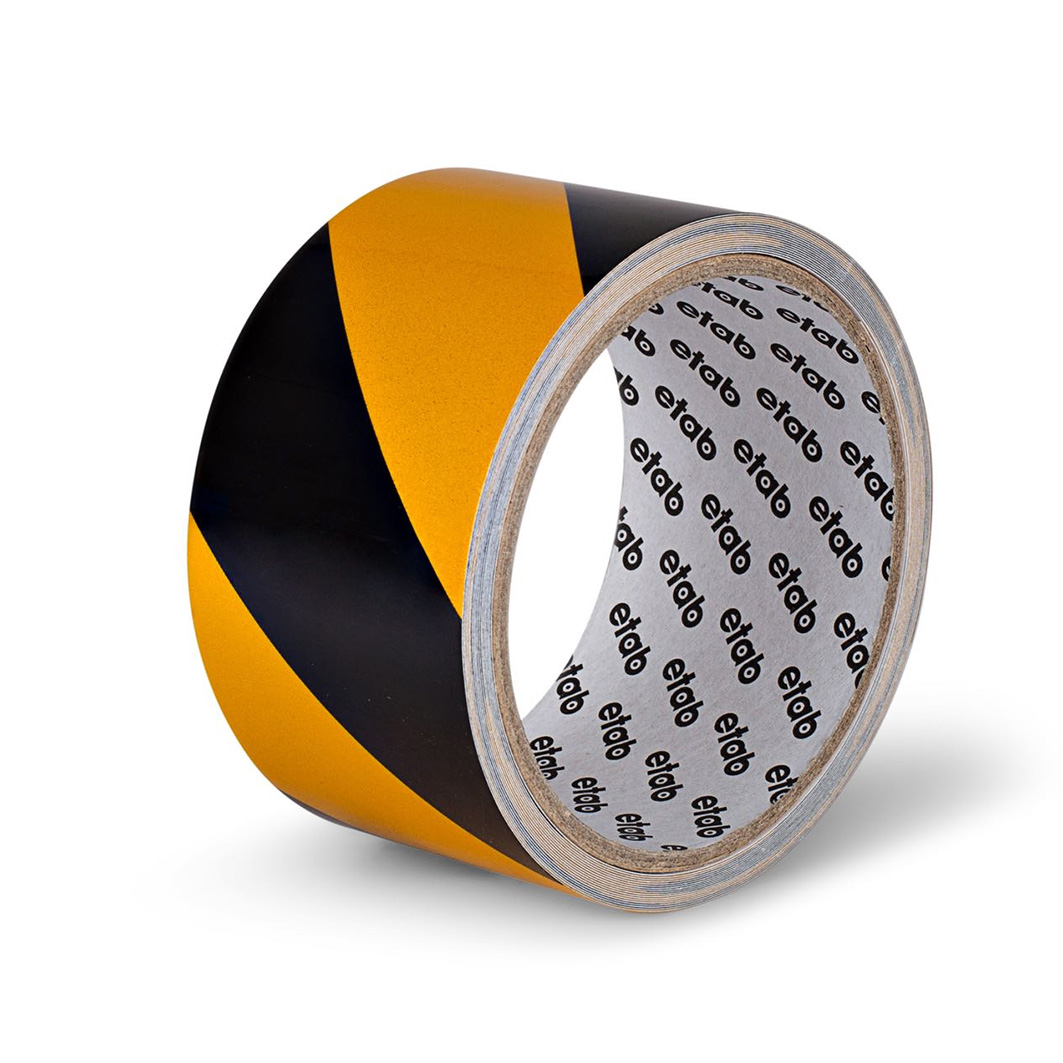 Reflextejpen är tillverkad av polyesterfilm med ett akrylhäftämne samt skyddsliner. Den har diagonala, tydligt synliga ränder i gul/svart.