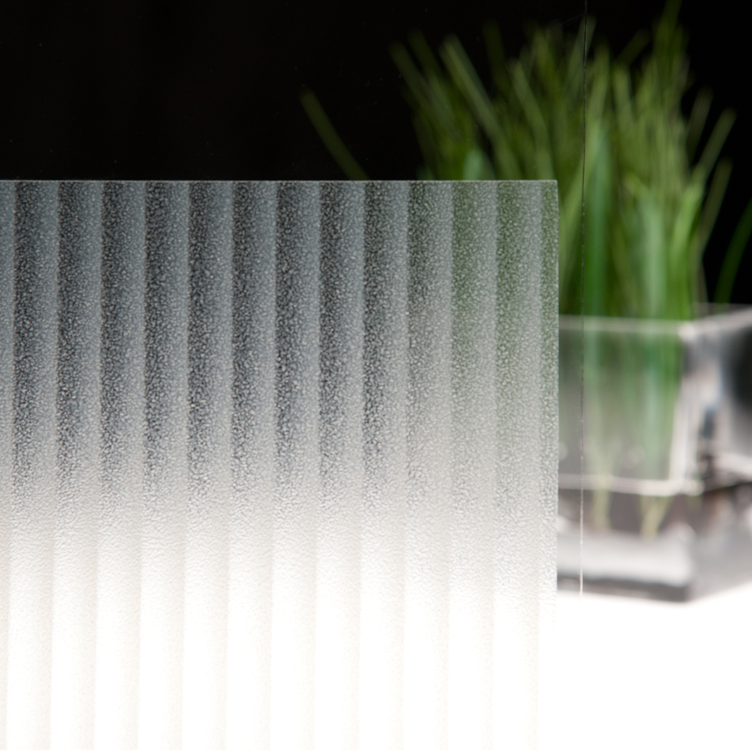 Den kombinerar design och funktion genom att kontrollera ljus och insyn samtidigt som den ger glaset utseendet av etsad eller texturerad yta.