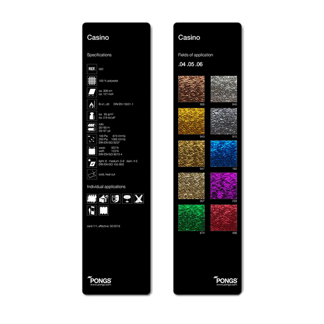 Material 100% polyester Width ca 308 cm Weight 95g/m² Fire protection DIN EN 13501-1 Ref nr 582 -