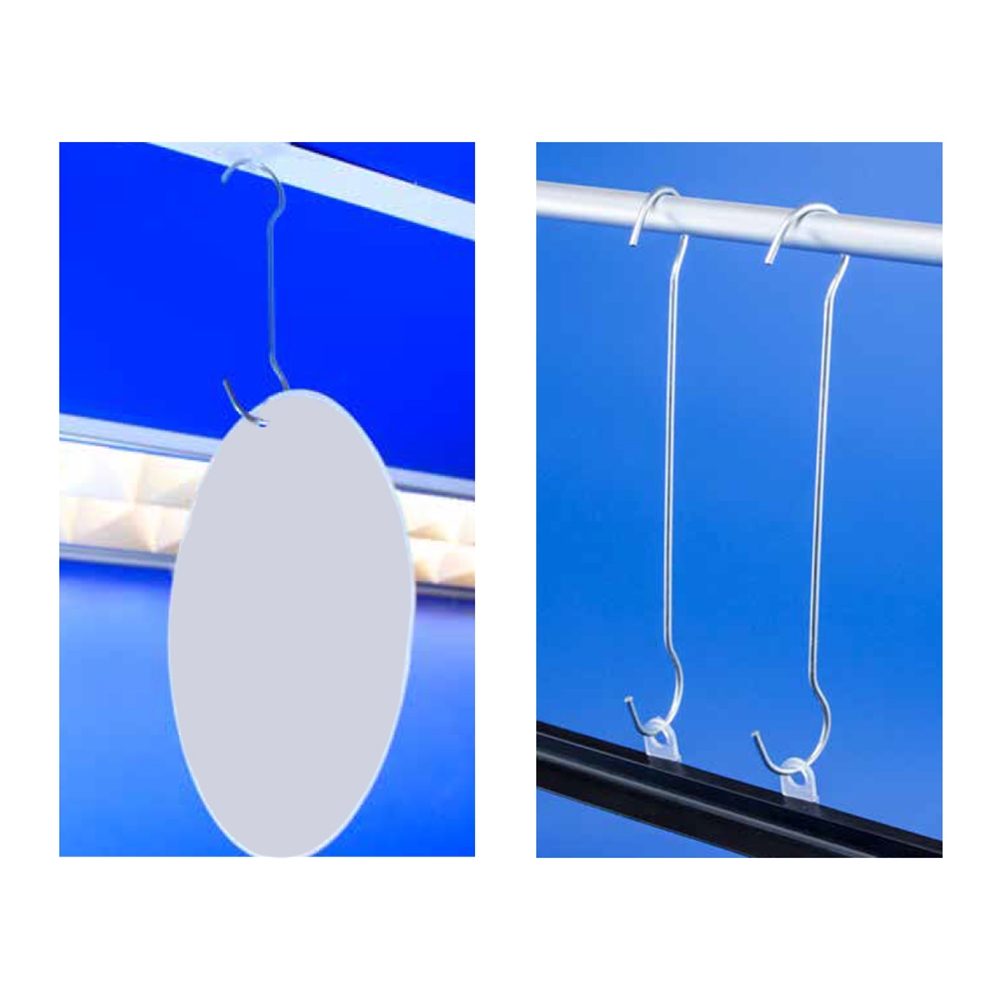En mångsidig lösning för att skapa ordning och organisera utrymmen genom att hänga upp olika skyltar och ramar. Den dubbla krokdesignen ger möjlighet att hänga upp skyltar eller ramar från taket.