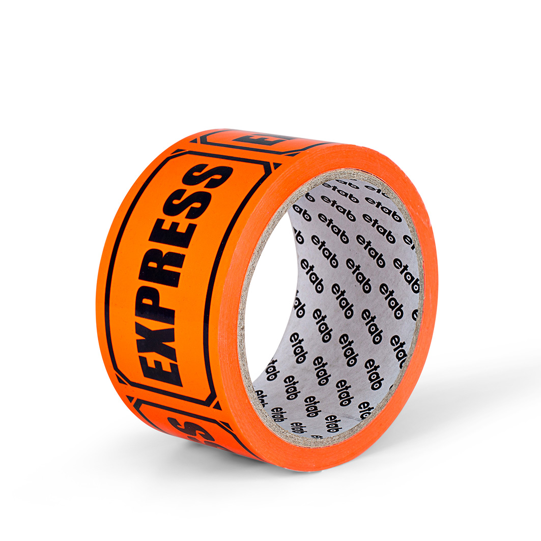 Etab 9618 är en fluorescerande orange PVC-tejp. EXPRESS tryckt i svart.