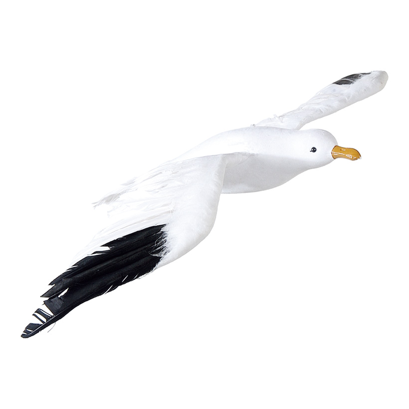 Fiskmås av textilmaterial med fjädrar. Storlek 35x75 cm, vit/svart. Kan kombineras med andra dekorationsartiklar för ett harmoniskt helhetsintryck.