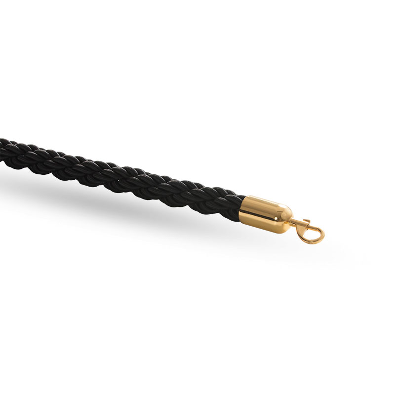 Ett svart flätat rep avsett för avspärrningsändamål med en låsögla i mässing.