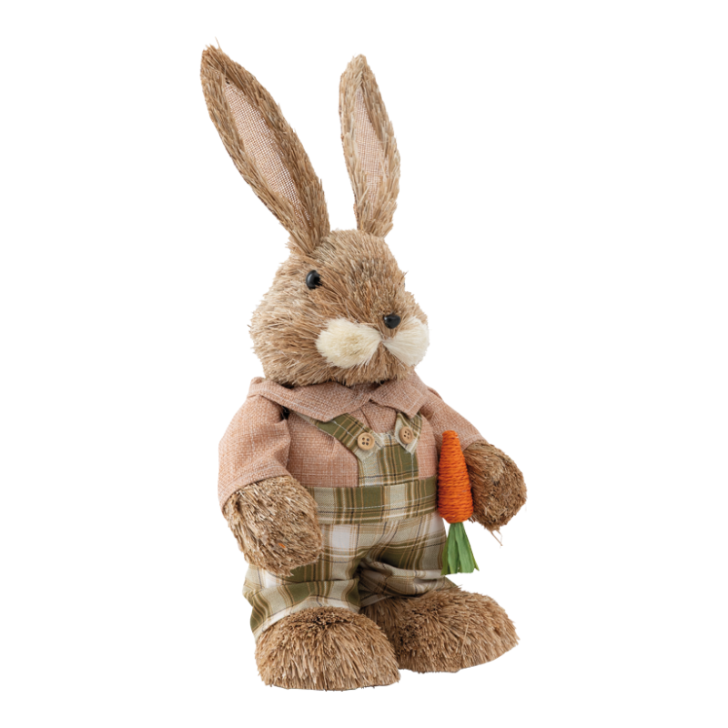 Kanin med hängselbyxor, 40 × 18 × 15 cm, i frigolit/halm/syntetfiber