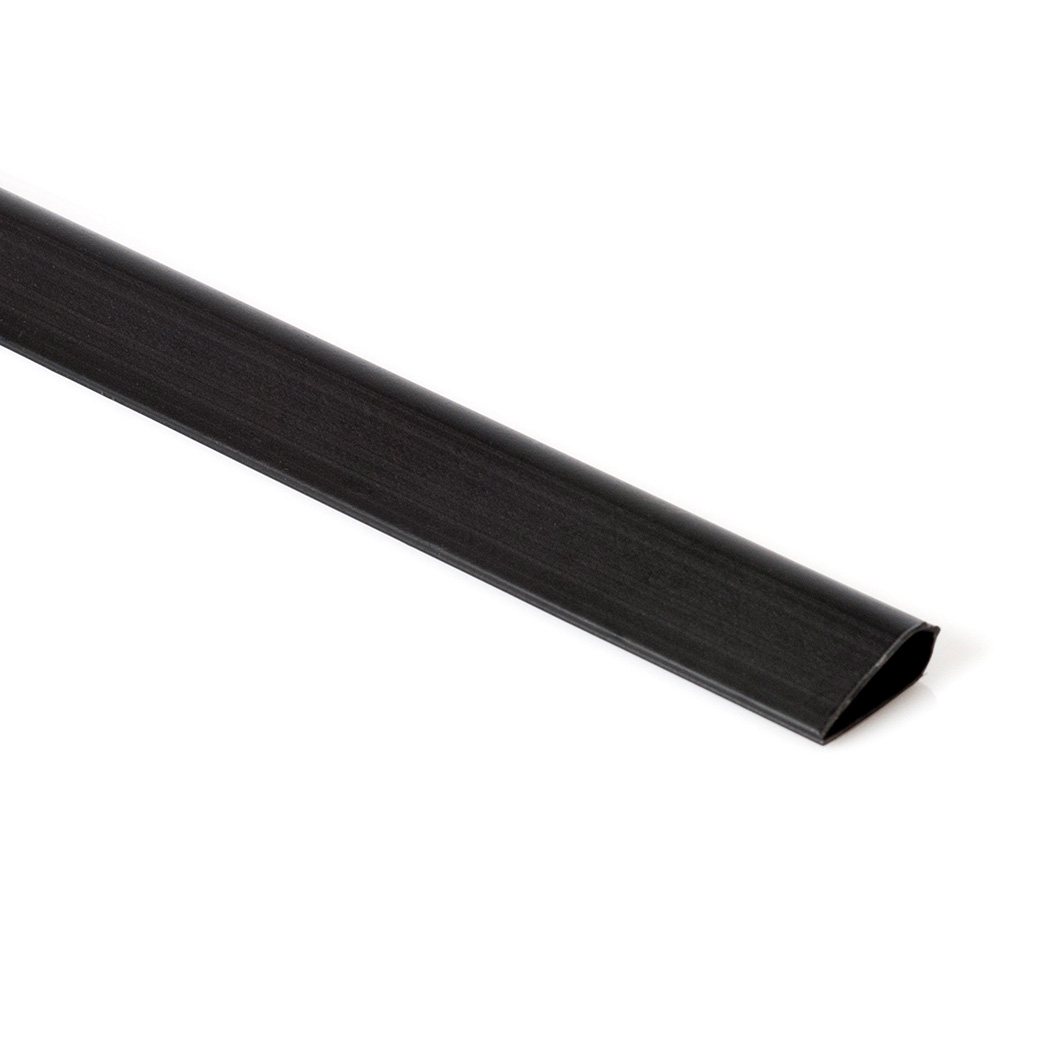 Svart klämlist i plast för upphängning av skyltar.