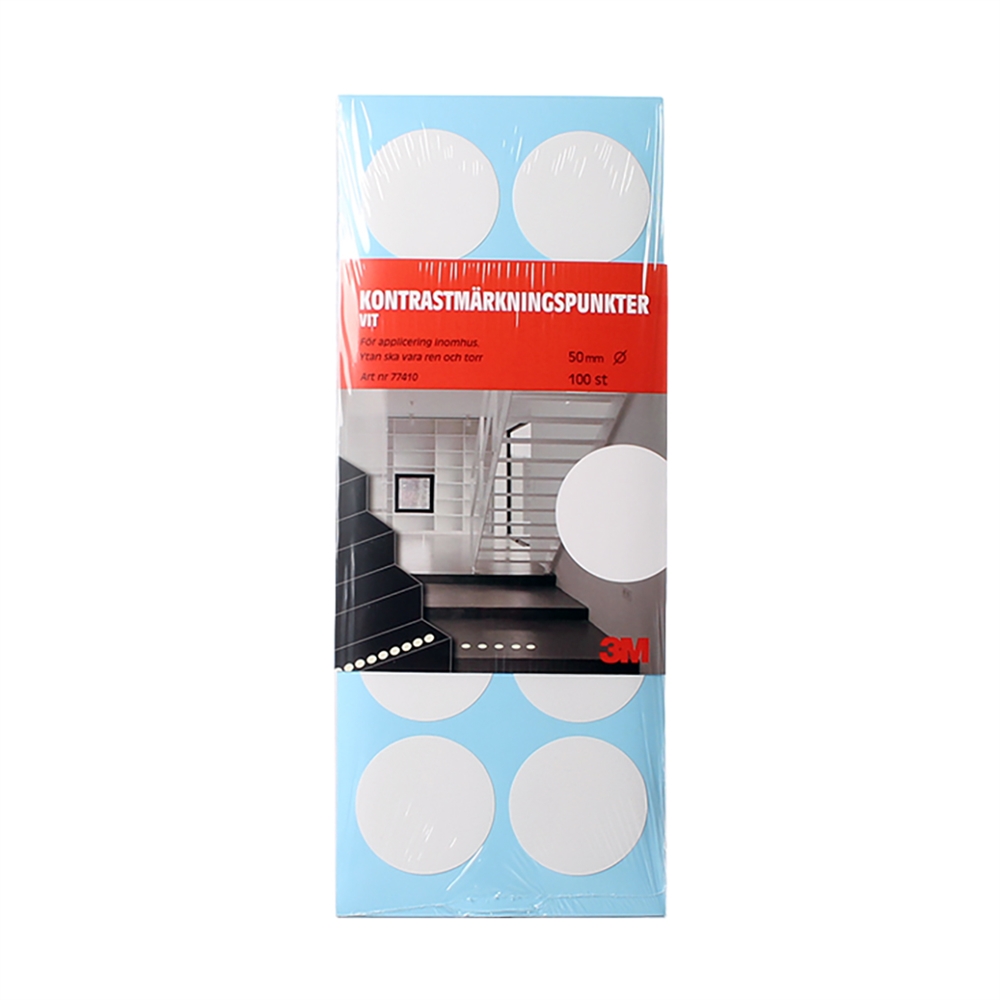 Vita självhäftande kontrastpunkter för golv och trappor. Utformade för att öka säkerheten och markera områden på golv och trappor inomhus. Självhäftande baksida för enkel montering. Se till att ytan är ren och torr innan montering för bästa resultat.