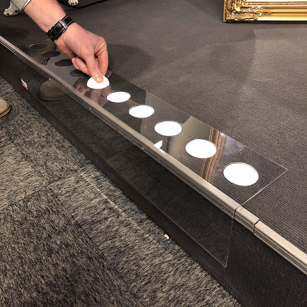 Monteringsmall för kontrastpunkter. Utformad för att ge jämnt mellanrum mellan kontrastpunkterna och innehåller 10 prickar med 30 mm mellanrum för att förenkla din installation.