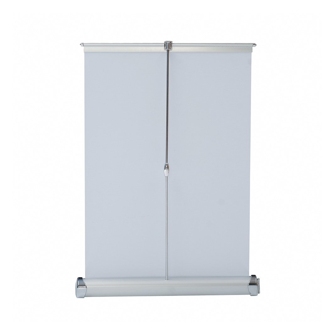 Tack vare sin kompakta storlek och låga vikt är den lätt att transportera och förvara. Mycket enkel att montera och demontera. Rulla bara ut duken från basen och fäst den på stativet – klart på några sekunder!