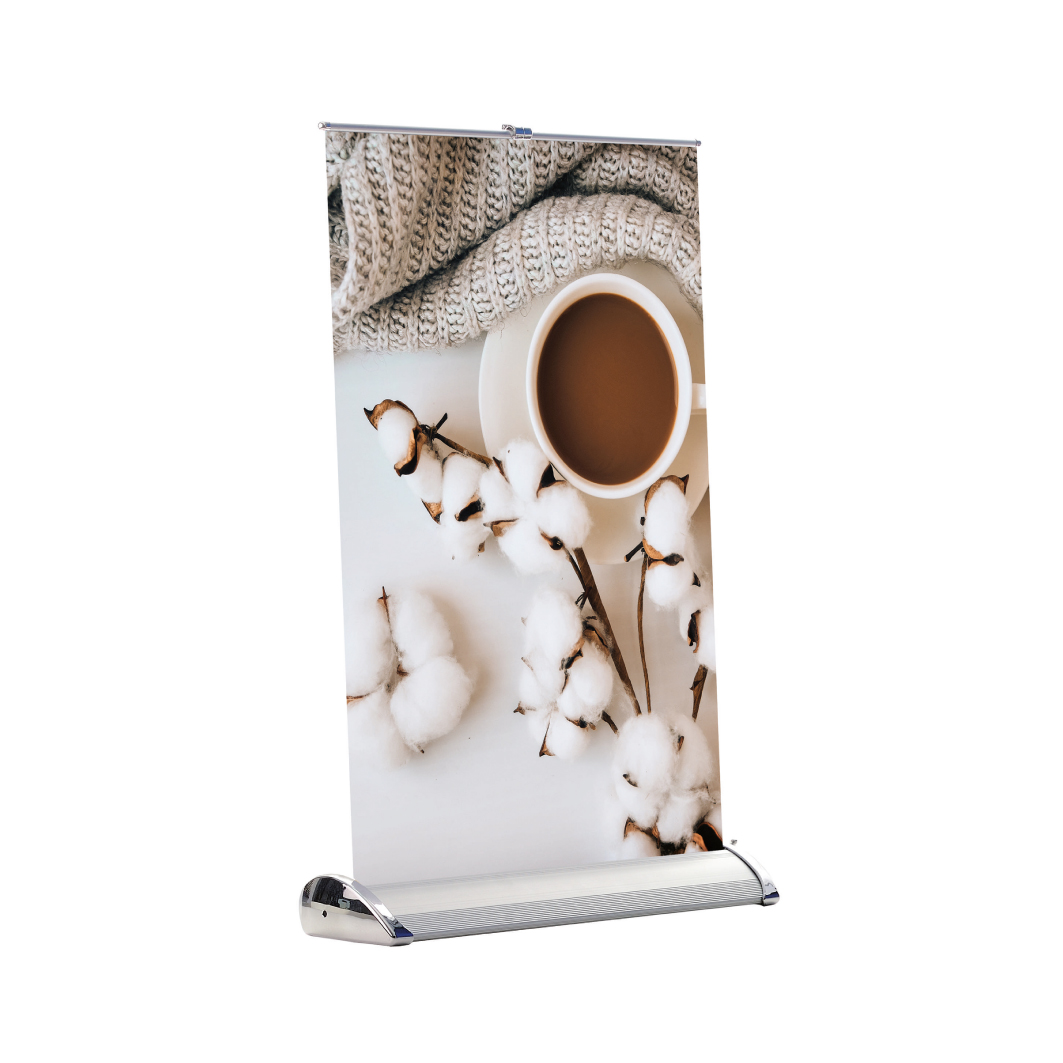 Mini rollup är en kompakt och lättanvänd exponeringslösning för bord, diskar och mindre utrymmen.