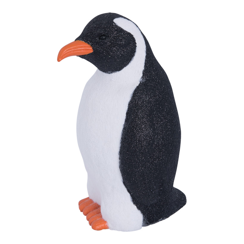Pingvin, stående, flockad med glitter, 25x14x13cm, svart/vit