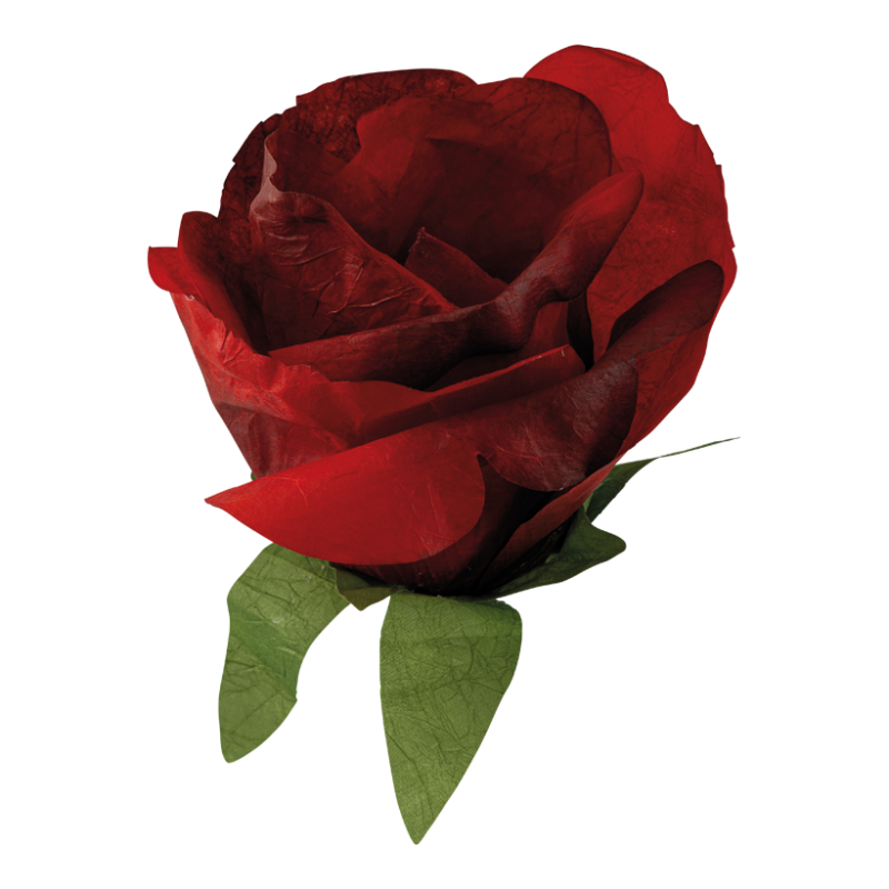 Röd pappersros med kort stam. Kombinera gärna med andra pappers- eller tygblommor
