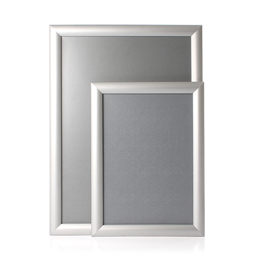 Snäppram i aluminium. Modern och stilren snäppram som passar perfekt för butik, kontor, restaurang eller andra ställen där information behöver bytas ut ofta. Ramen är silveranodiserad vilket ger aluminiumet ett exklusivt utseende och mer motståndskraftig mot slitage och korrosion.
