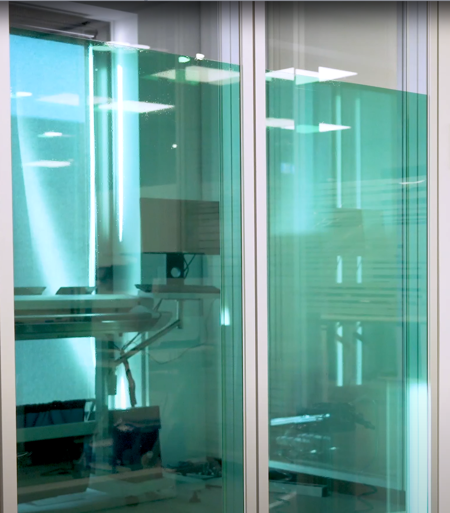 En transparent, färgad självhäftande film som ger ett grönt sken på glas utan att minska transparensen.