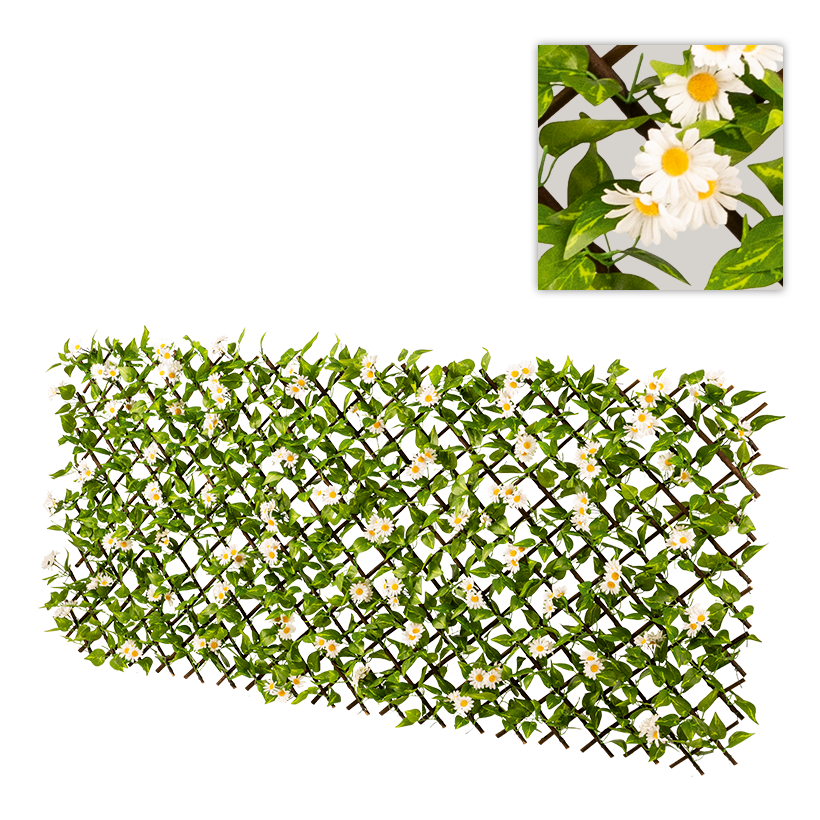 Staket med prästkragar av pilträ/konstsilke. Utdragbart 90x180cm