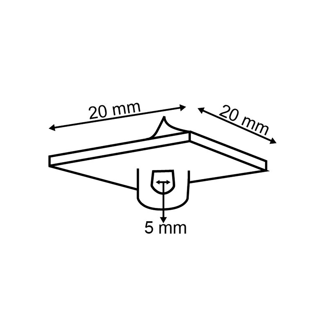 Fyrkantig självhäftande takkrok. 20x20mm. Permanent lim.